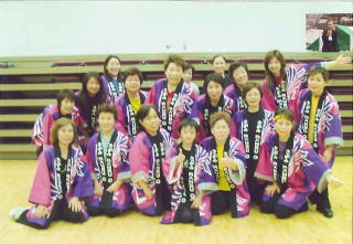 | 下は6才から上は71才。魅力あるマダム達が笑顔いっぱい。名前のように「らんラン」楽しく踊るチームです。まだ若い者には負けませんわ。 |