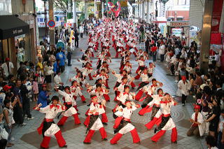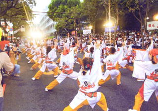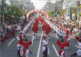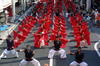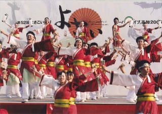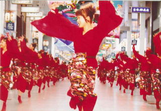 | 「和の心と伝統を伝える」がコンセプト。本場高知のよさこいをベースに、民俗芸能「能舞」を組み入れ、元気に熱く踊ります。 |