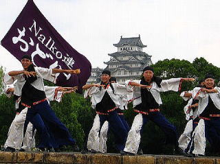 | 兵庫県姫路市を中心に県内外で「よさこい鳴子踊り」の活動をしています。8月5・6日に行われた「第7回ひめじ良さ恋まつり」のパワーと勢いで高知の街で舞い踊ります。 |