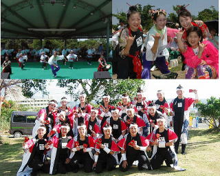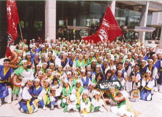 | 旗頭、エイサー、獅子舞など沖縄スタイルのよさこい踊りを初披露します。「RYUKYU民族の祭典2006」の琉楽座を、ゆたしくうにげーさびら!(よろしくお願いします。) |