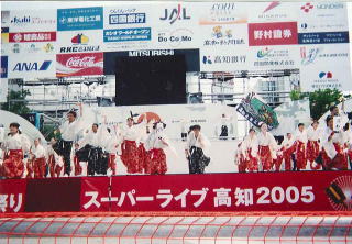 | 私達、夢舞台は高知の夏を目標に練習しています。今年も全国大会に参加する事が出来て、本当に嬉しく思っています。力一杯、踊りますので、応援して下さい。 |